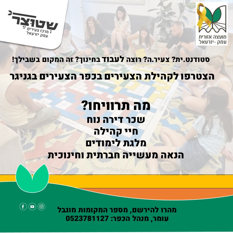 - ממחלקת צעירים- הרשמה לכפר הצעירים בגניגר- מצורף פלאייר.