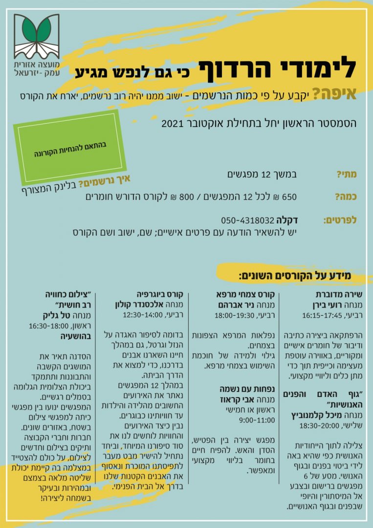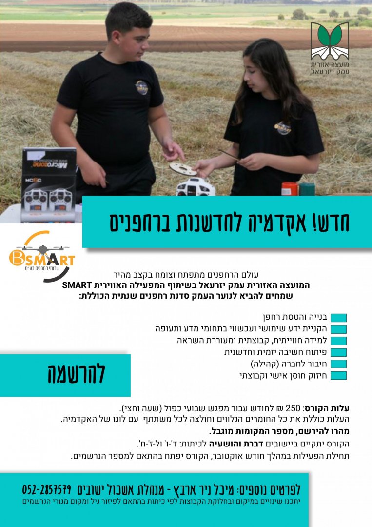 1. סדנת רחפנים לבני נוער - https://www.emekyizrael.org.il/143/ - קישור להרשמה.