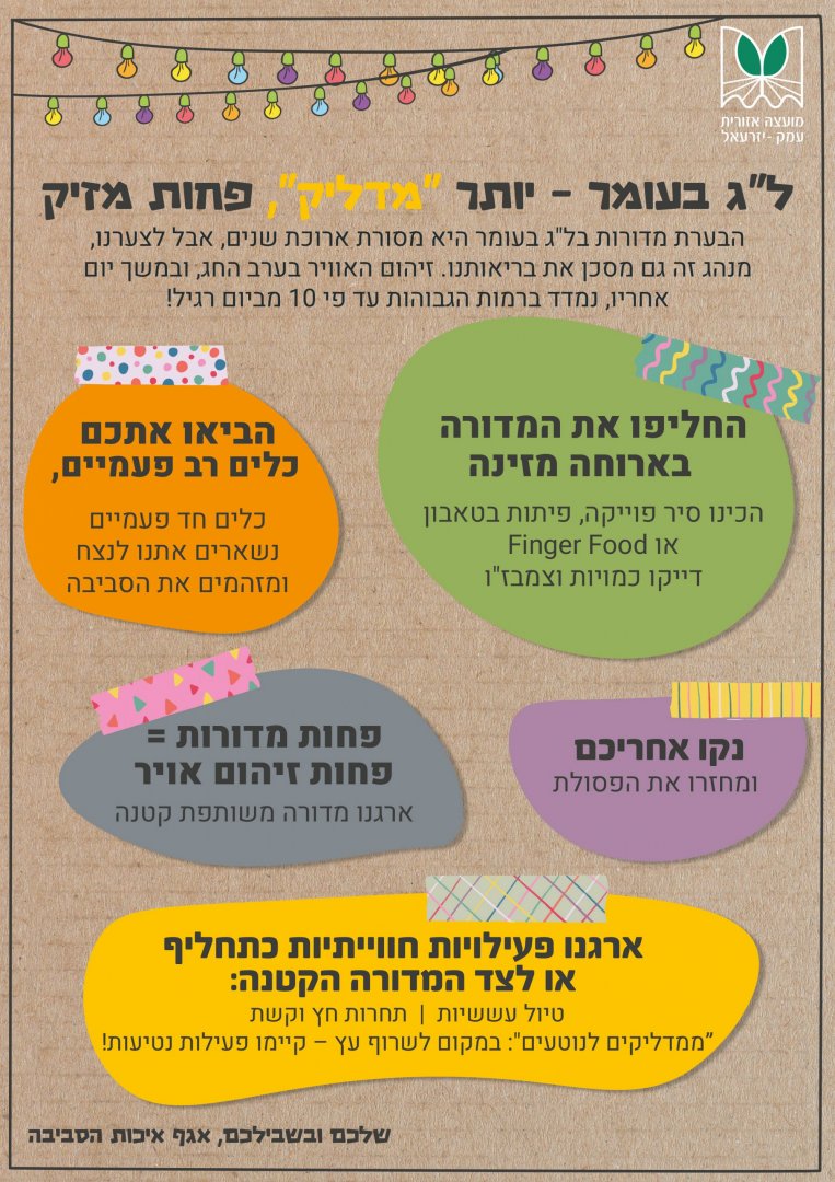 1. מאגף איכות הסביבה- ל"ג בעומר מצמצמים מדורות ומזהמים פחות.