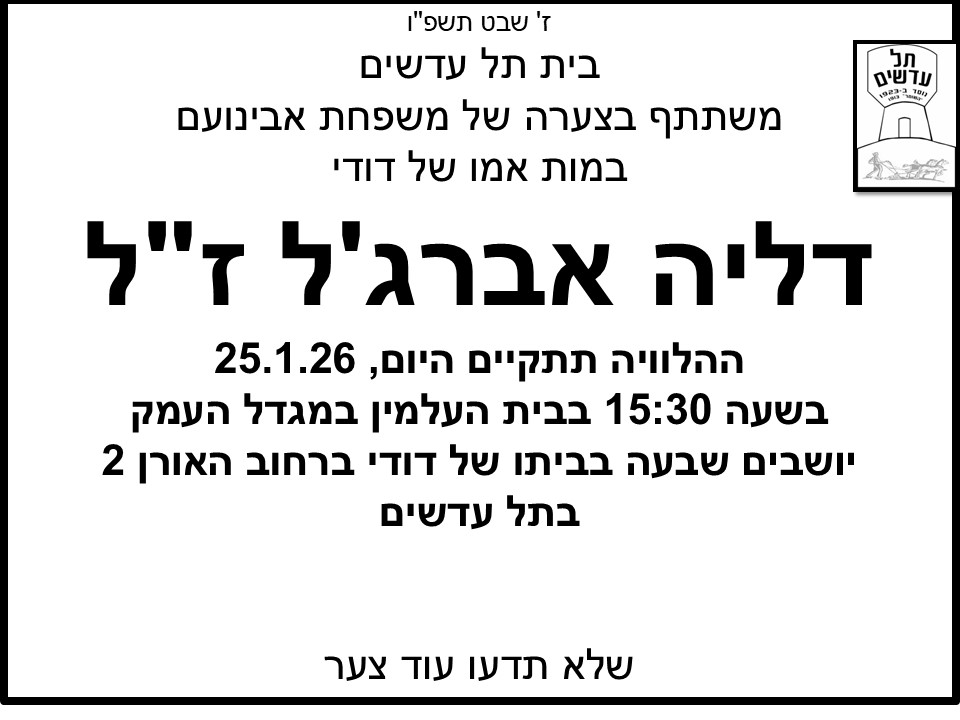 משתתפים בצערה של משפחת אבינועם במות אמו של דודי, דליה אברג'ל ז"ל