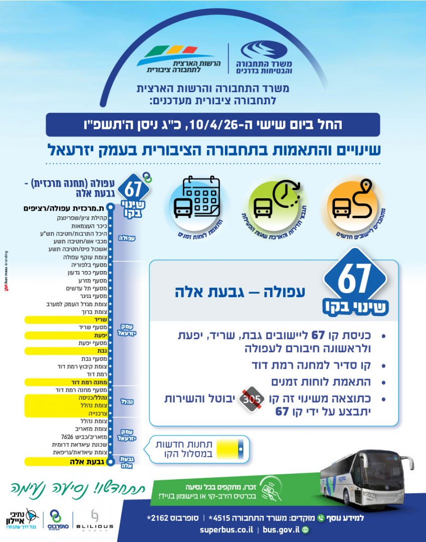 שינויים והתאמות בתחבורה הציבורית קו עפולה גבעת אלה